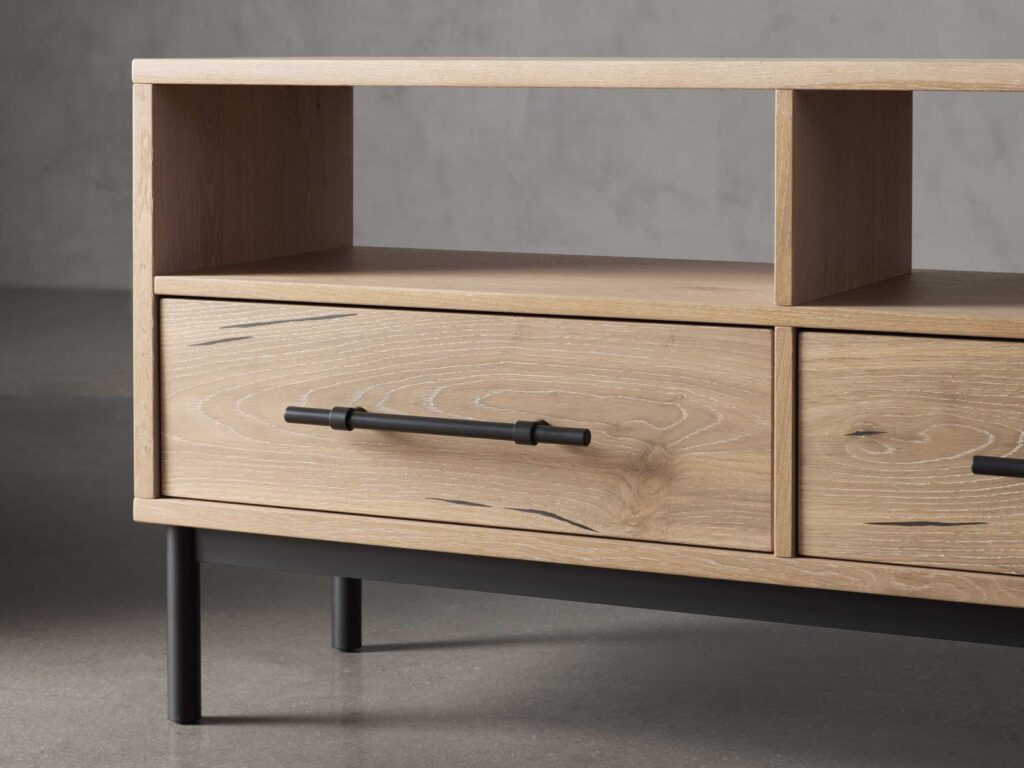 Bring organization and style to your entertainment space with our Open Media Console. This handcrafted piece combines contemporary design with rustic charm, providing ample storage for all your media essentials. Its open design allows for easy access and display of your equipment, making it the perfect addition to your home.